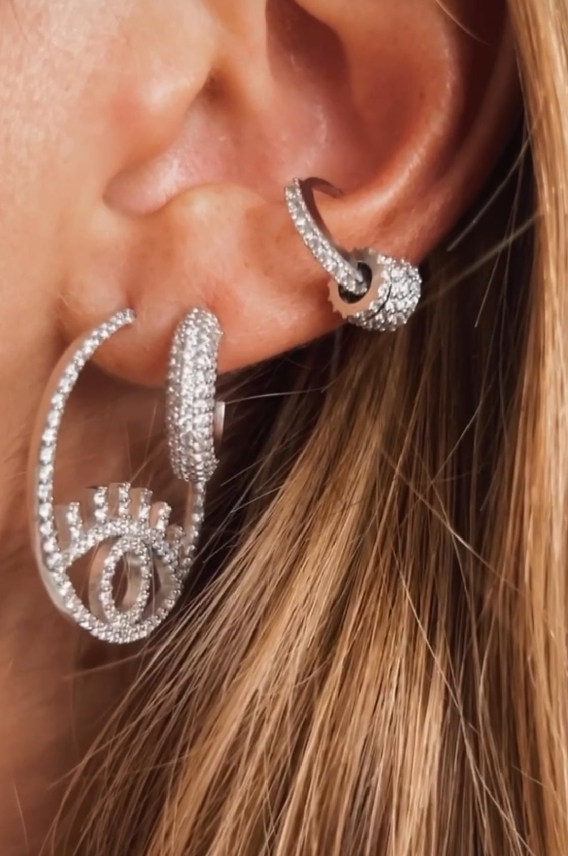 What we love most about these standout hoops is how they move with you: as you walk, jog, and dance through your days, the tiny, crystal-dotted rings that embellish them will slide to the rhythm. The perfect pick for when your style aspiration is "fresh take on classic looks."